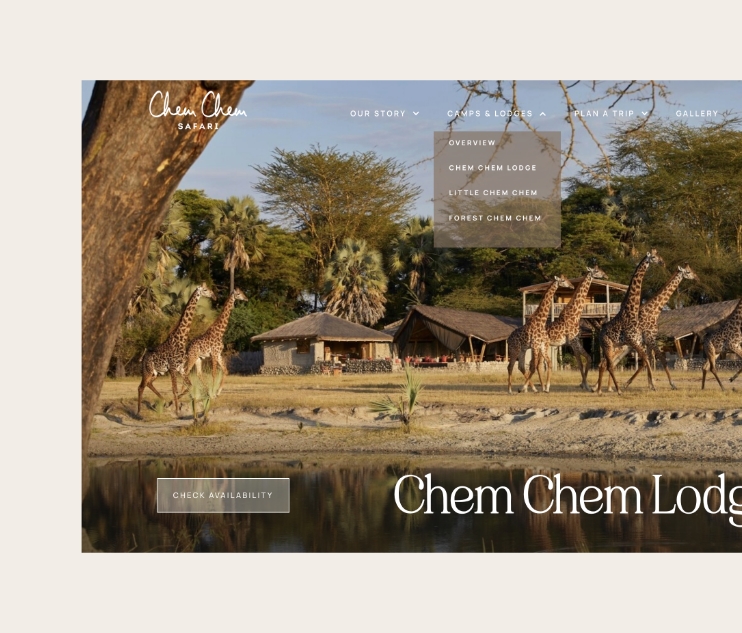 ChemChem Safari needed a new online home to mirrior their philosophy of slow safaris. We worked with their team to dermine a new visual language for their online space, relooking at fonts, colour palettes and overall approach to layout. A stylescape led the creative process and the site was developed on Webflow so that the marketing team could self-manage and customise the site into the future.